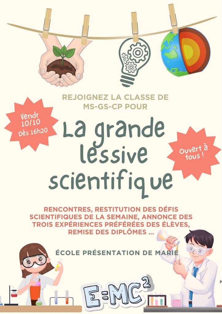 Une grande lessive scientifique vous attend ce Vendredi 10/10 dès 16h20 pour voir le résultat du travail des élèves !