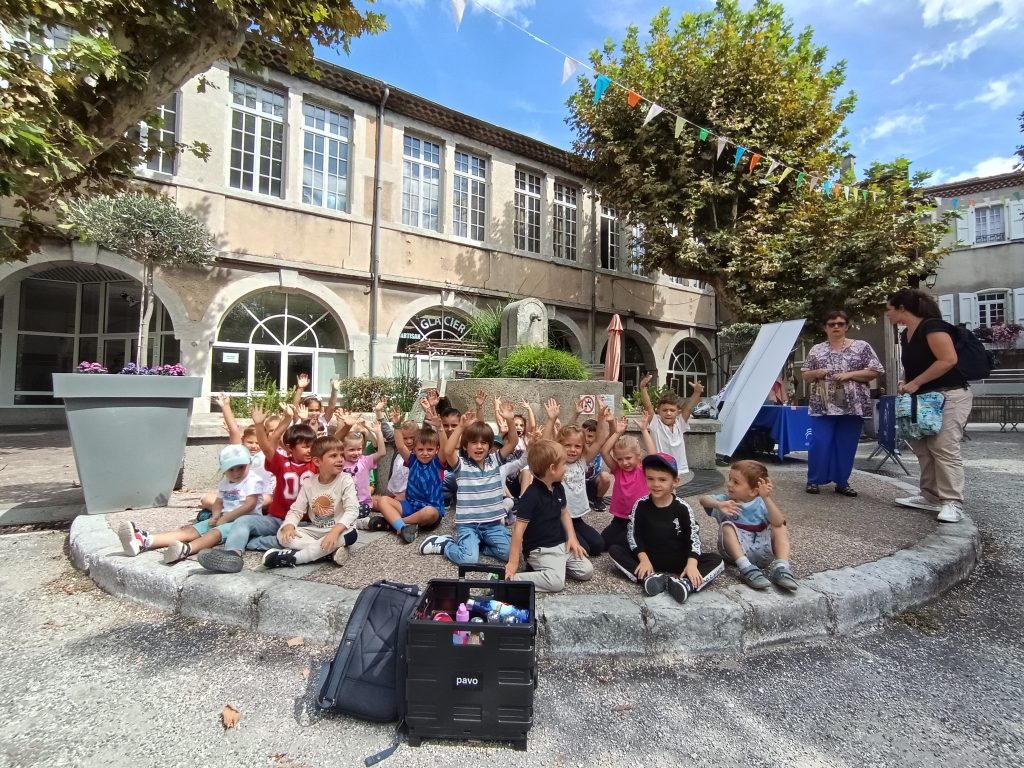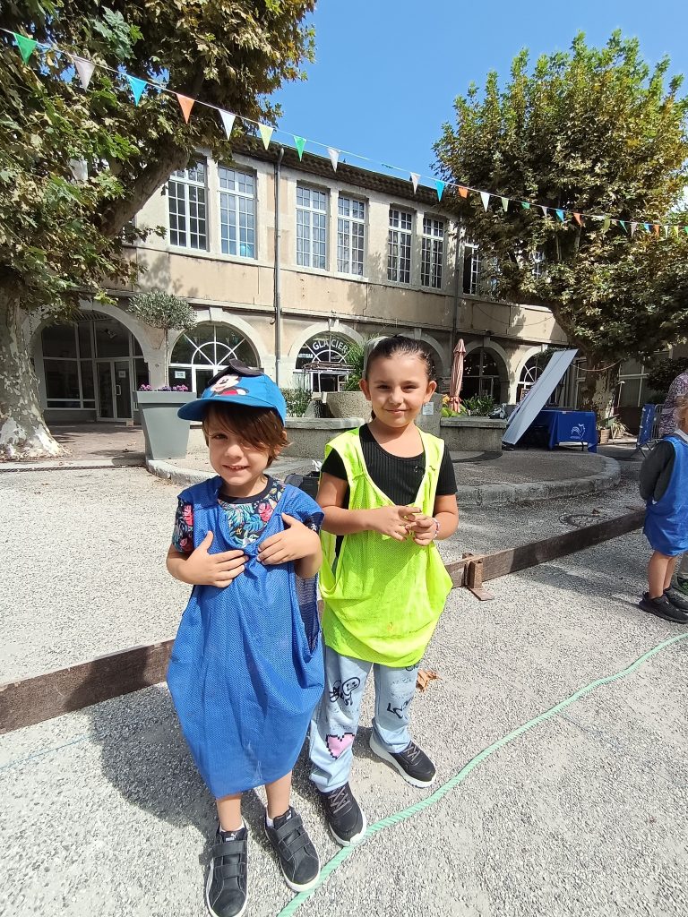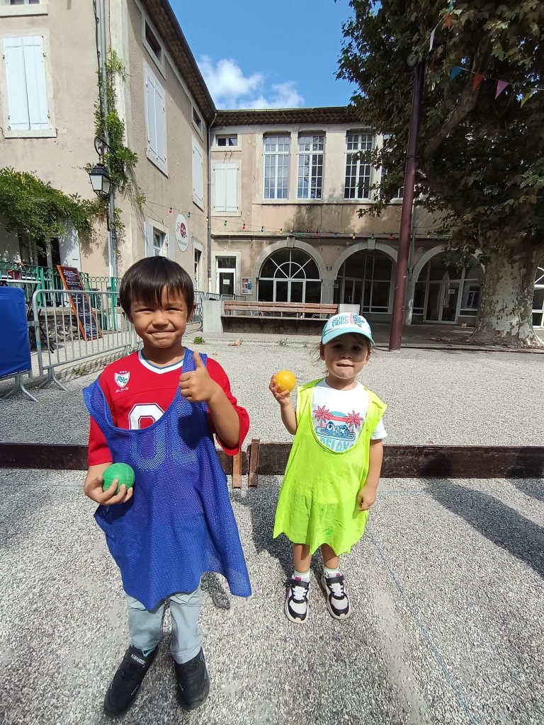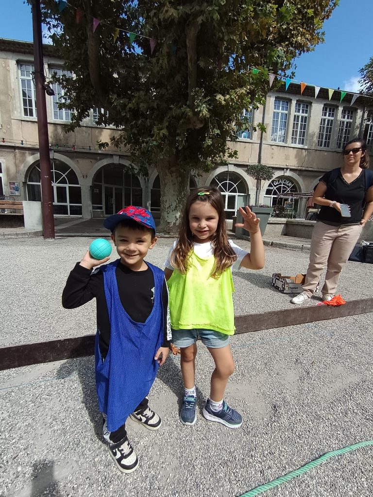 Première collaboration entre les MS de Maîtresse Delphine et la classe des MS GS CP de Maîtresse Tiphany lors d’une initiation de pétanque sur la Place du Bosquet !