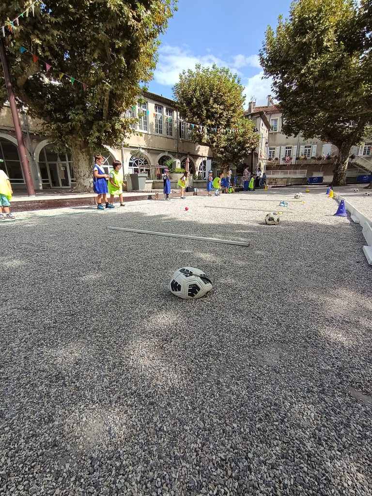 En effet, ce jour, les élèves se sont essayés au lancer de boule sur cible au sol !